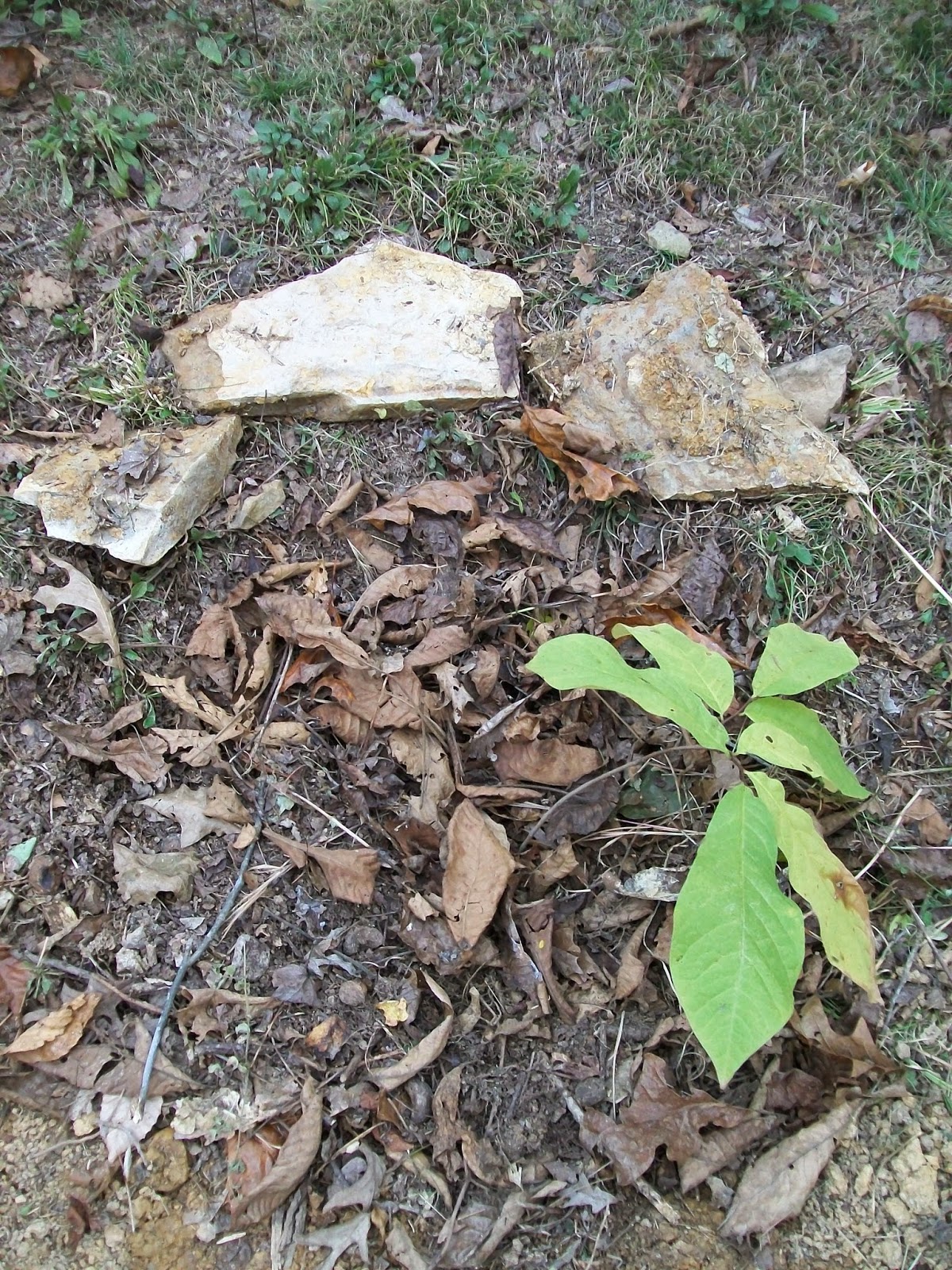 I'll begin by talking about the Fruit trees I transplanted yesterday. A native fruit to Kentucky, the Paw paw, can be found growing in damp, shady locations of wooded areas. My grandparent's have a small grove of Paw paws (over 100) in their woods. The trees have not started to fruit, either because they need a pollinator of a different variety of Paw paw, or they are still too young. Luckily, I (think) I have found a Paw paw grove in the woods behind my house. So I have transplanted 5 (young) Paw paw trees on my property, and soon I will transplant several Paw paws from my grandparent's woods. Hopefully because I transplanted young trees and because I will be planting two different varieties, the trees will grow quickly in the Full sun and produce fruit within the next couple of years.